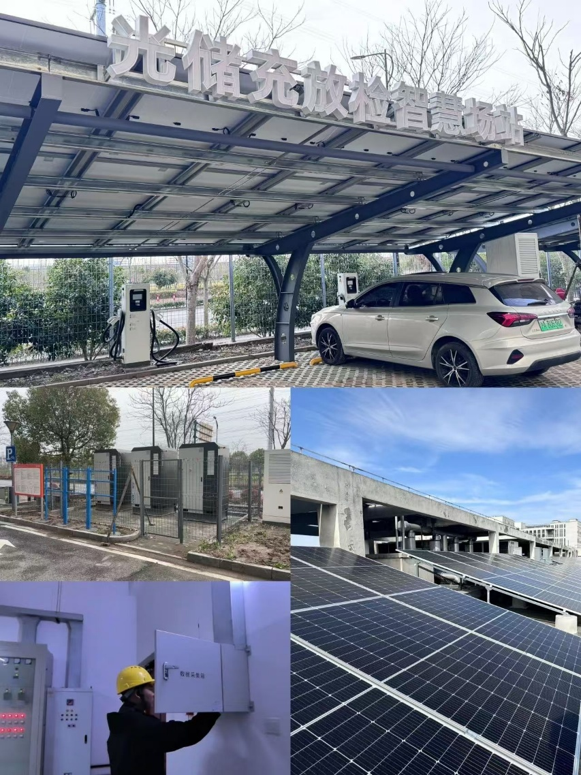 项目实施范围包括办公楼、实验室、食堂等共13栋建筑和7个电瓶车车棚以及一个智慧充电场站,实施内容包括电力监控、能耗、运维、智能照明、光伏、储能和充电桩(电瓶车+汽车),其中变压器总容量17000kVA,光伏装机容量150kW(一期),储能装机容量100kW/215kWh,39台10路电瓶车充电桩,59台7kW交流充电桩,2个240kW充电堆。
