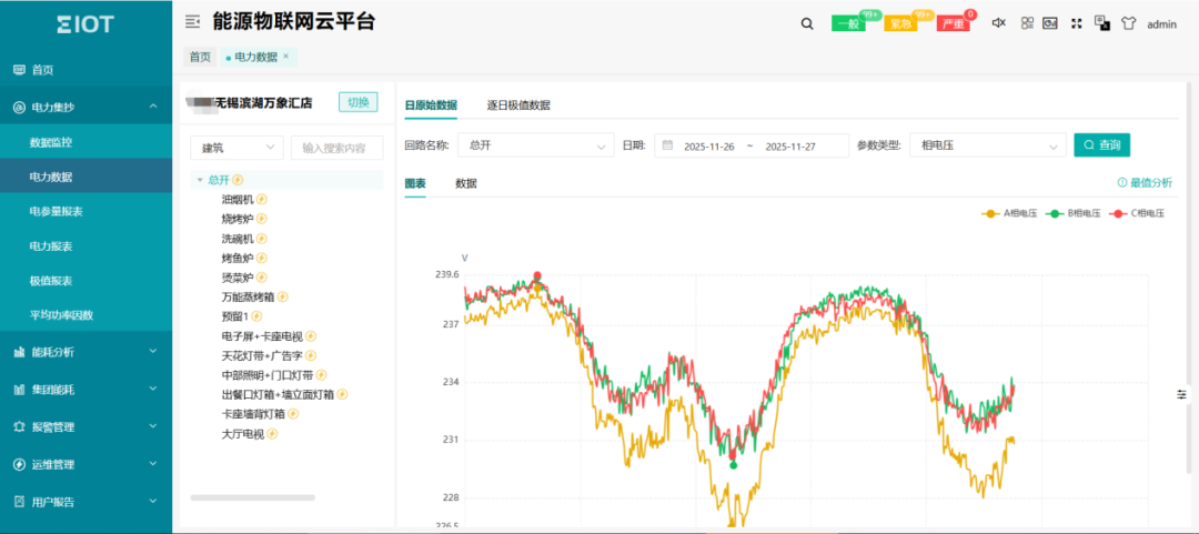 独立回路监测:支持对灶台、蒸柜、冰箱、空调、照明等关键负载分别接入独立监测回路,实现用电精准归因;
