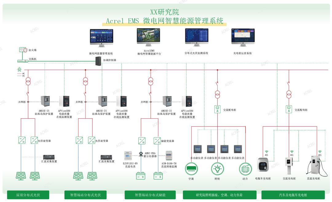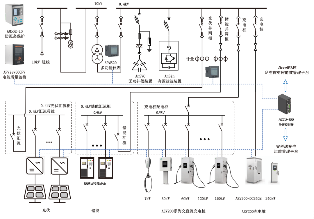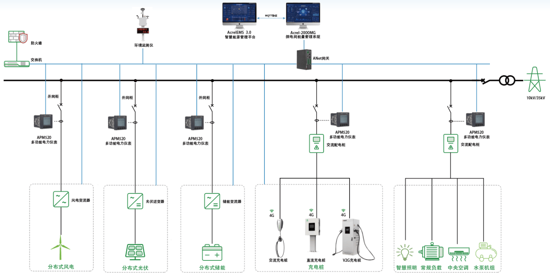 此外安科瑞零碳园区智慧能源管理方案,以“源网荷储充"一体化管控为核心,将储能一体机、储能管理系统与光伏、充电桩、智能配电等深度融合,为园区打造全景感知、智能优化、精准核算的“能碳神经中枢"。