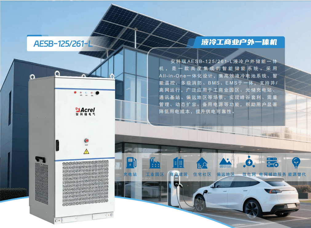 安科瑞电气股份有限公司深度研读国家政策精神,积极响应“零碳园区"建设号召,依托其在储能设备与能源数字化领域的深厚积累,推出AESB-125/261-L液冷户外储能一体机与Acrel-2000MG储能能量管理系统,以“硬件+软件"双重赋能,为园区构建安全、高效、智能的储能基础设施,精准对接政府工作报告中关于“智能电网与绿电应用"、“高耗能低碳改造"的部署。