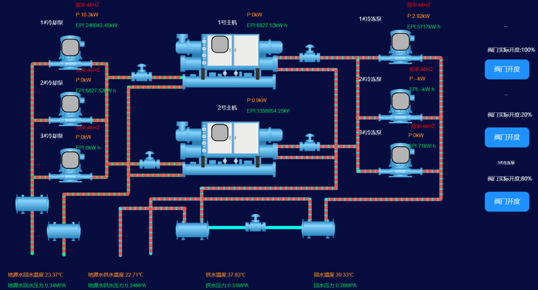 实时监测分析动环参数、电气参数、运行工况、视频监控等内容;可通过平台对制冷系统设备进行远程控制,包括设备启停状态切换、控制模式(远程/就地)(远程/就地)切换,以及关键参数调节,保障制冷系统高效稳定运行。